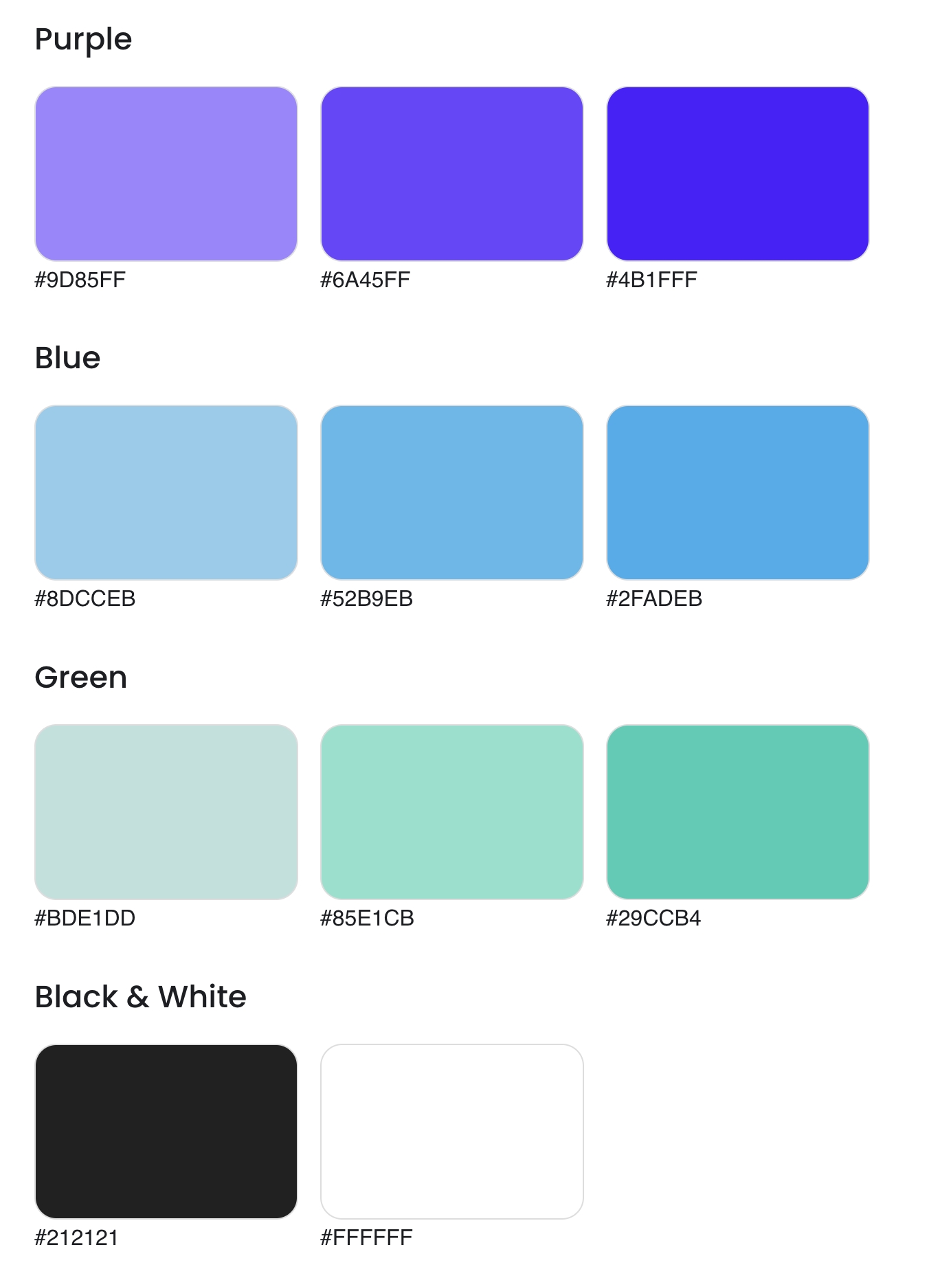 Specifies color codes (RGB, CMYK, HEX) for accurate reproduction across different platforms and mediums.